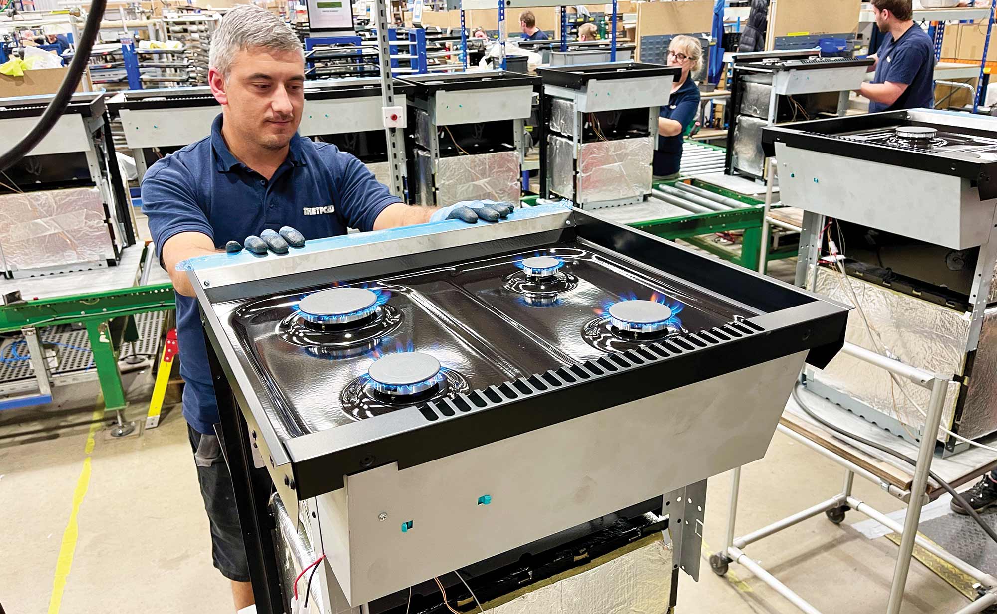 About 1500 cookers and ovens are produced every day at Thetford, as well as 600 hobs and 500 sinks – quite an output. When I visited, I saw the work being done in a relaxed but efficient manner, with close attention paid to getting it right first time.
