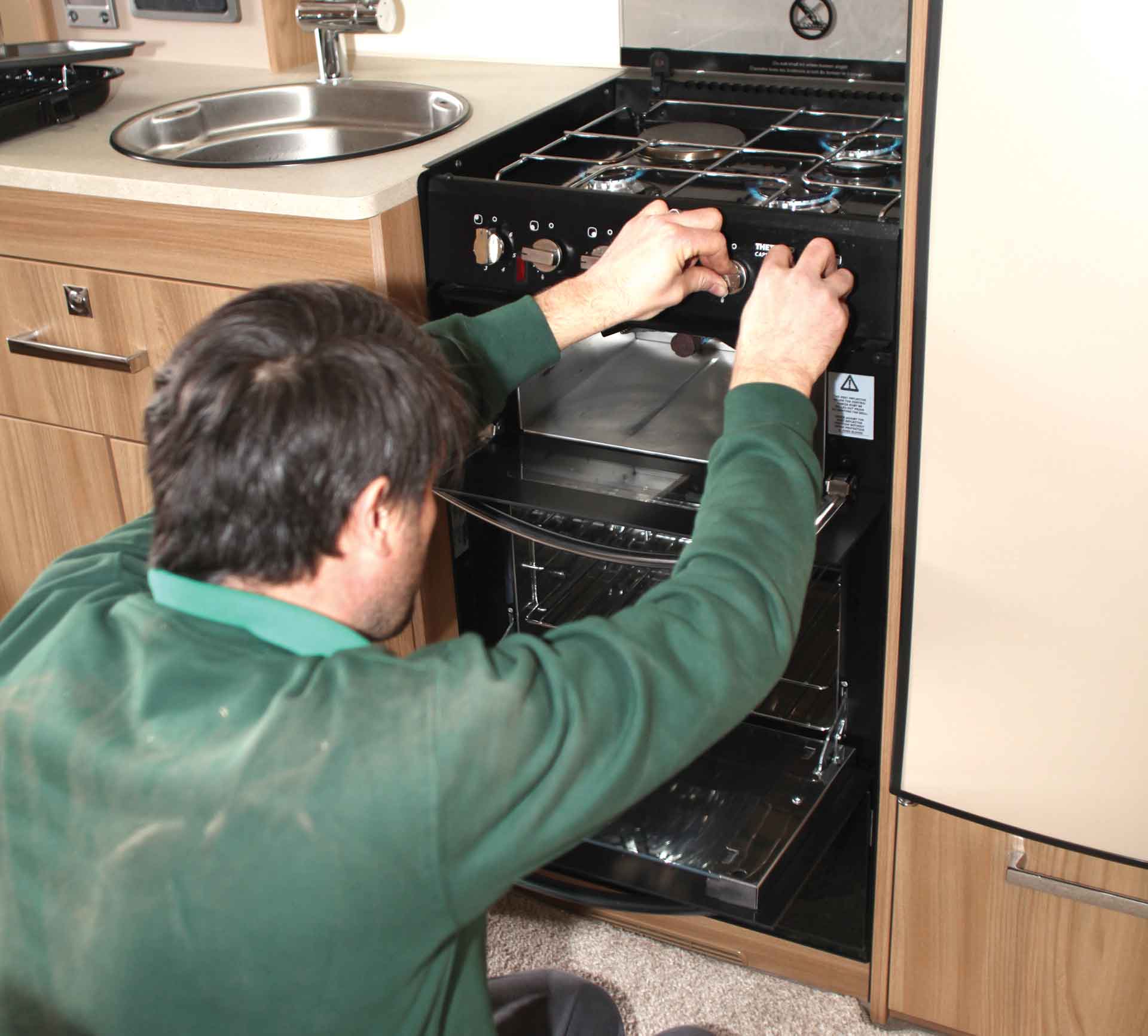 1 In 1996, gas cut-outs became a compulsory addition to leisure vehicle cookers. Test yours by igniting each of the burners one at a time, running it for about 10 seconds, then turning it off.