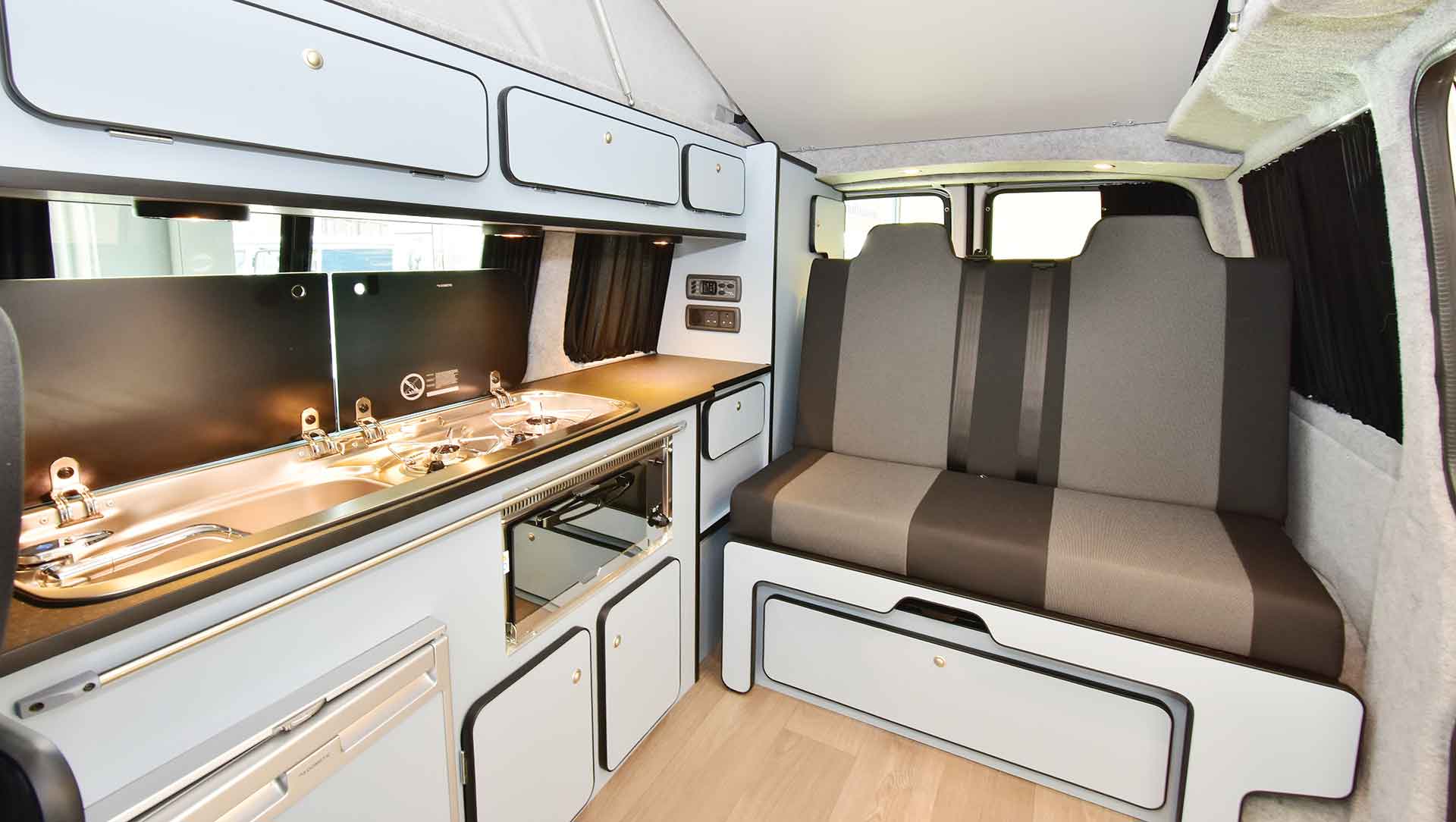 Leisure vehicle kitchen designers have a bit more freedom working with duplex-style cookers, where they get to choose the position of the hob on the worktop. Taking a step away from the standard work surface layouts, some designers have really gone to town, placing as much emphasis on style as practicality.