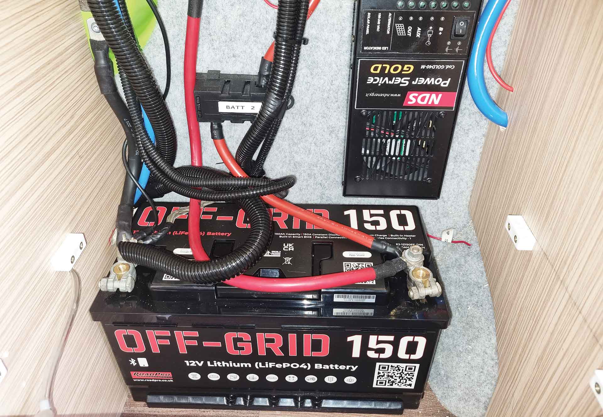 This is the place to start. If you are still using the single battery supplied by the factory, you’ll be severely limited if you ever overnight without a mains hook-up. The easy way to add more power is simply to add an extra leisure battery (we recommend two identical ones in terms of brand, capacity, age and chemistry – don’t just bolt a new battery next to an old one).