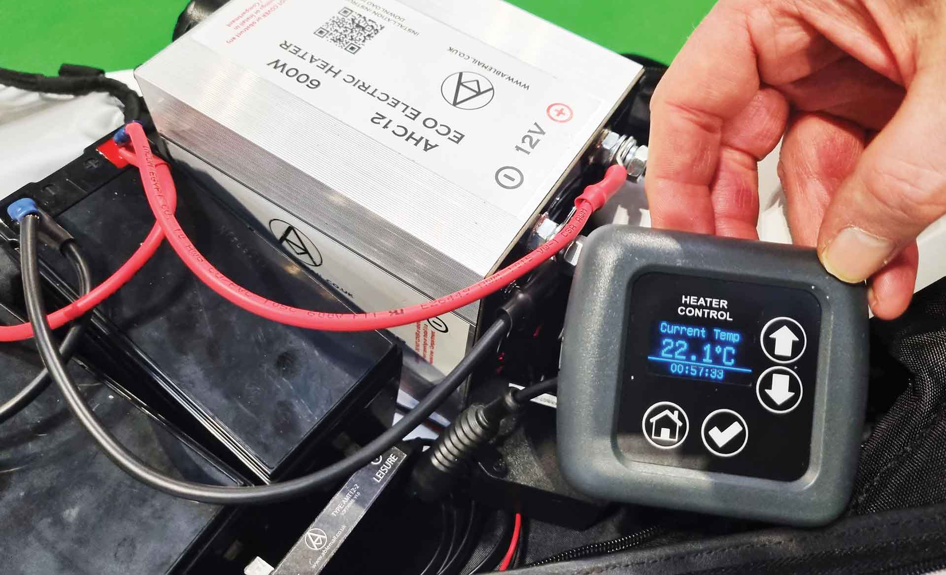 Another firm is producing a new type of super-efficient blown-air heater. I saw a demonstration of the 600W Ablemail AHC12 electric heater at the recent NEC motorhome show, and this unit runs directly off 12V (drawing up to 60A – considerably less than a fan heater running from an inverter), but offers a very rapid warm-up time.