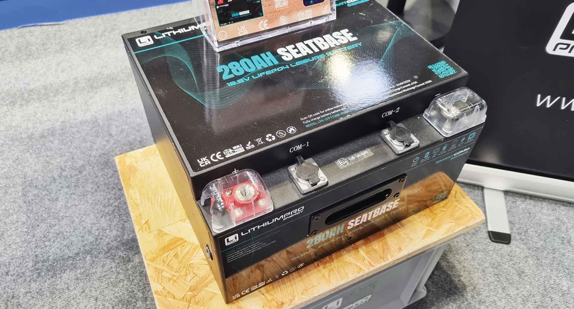 You can get them in all sorts of sizes nowadays – at a recent show, they were selling 628Ah lithium batteries. For most average power consumers, that would allow you to camp off-grid for several weeks!