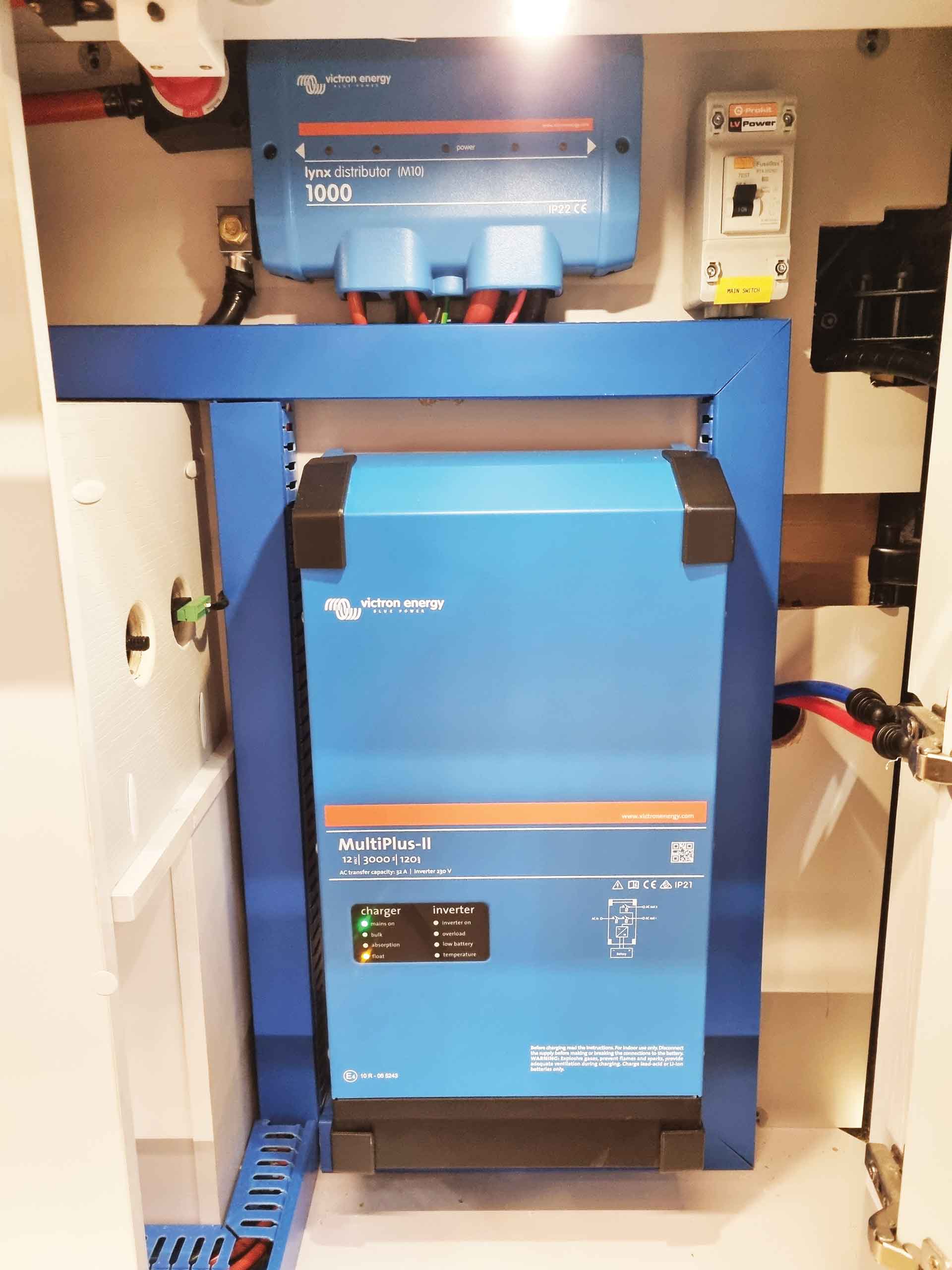 A fairly recent innovation is to combine the motorhome mains charger and an inverter in one neat unit. This makes installation easier on new builds and is also useful when you’re upgrading to a larger battery bank. One major benefit they have is that should the mains power be interrupted, the unit will automatically switch to the inverter in just a few milliseconds, giving you uninterrupted power to electronic devices (so if you are working, your laptop won’t go off).