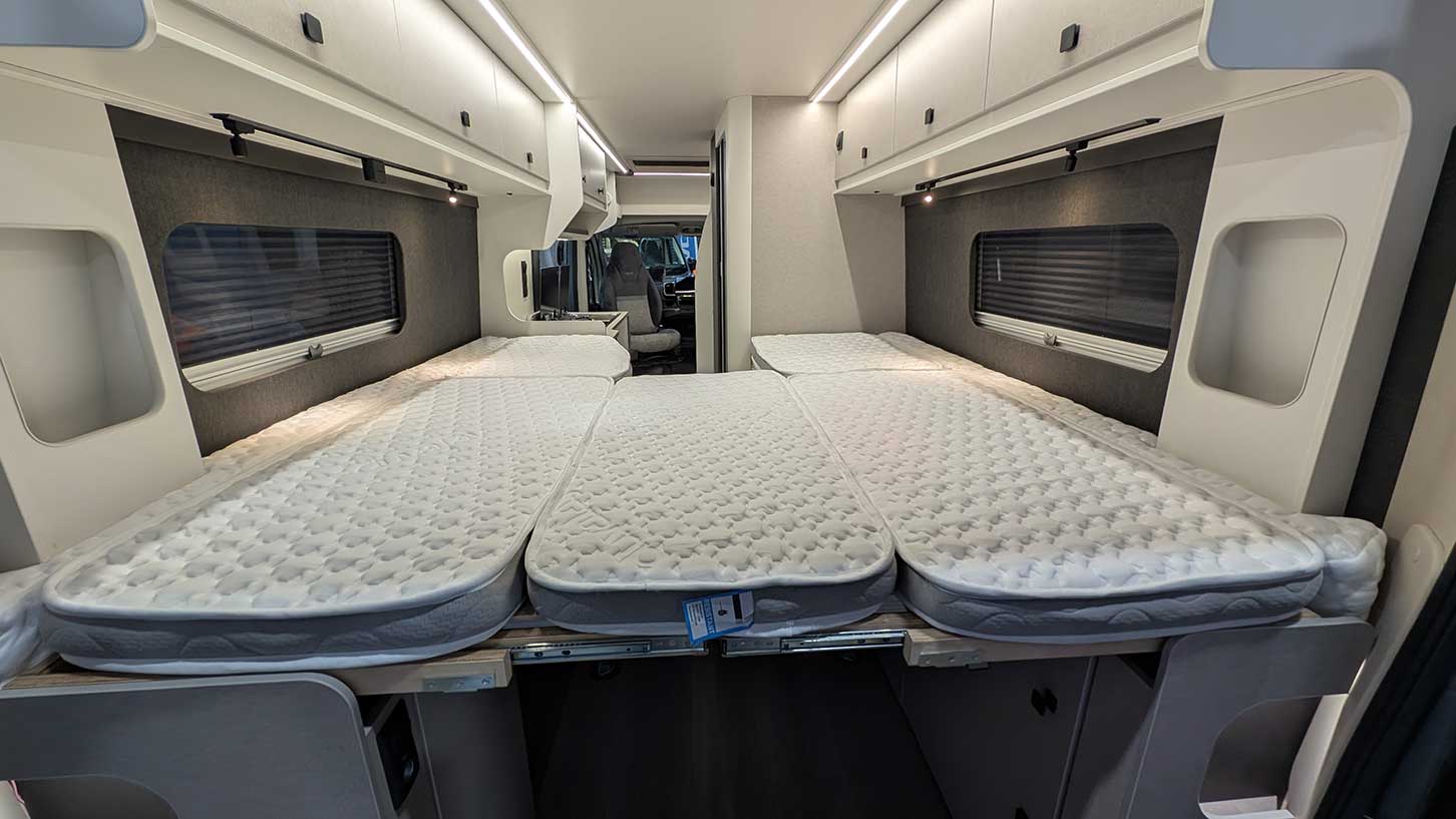 Unusually, the three camper vans in the range run on a different base vehicle: the transverse bed 1200GL and the rear lounge 1200RL (both £59,805), and the fixed single bed 1200SL (£60,805) – sit on a 6.36m-long Fiat Ducato, which is considered one of the best vans for a camper conversion. Again, as standard, all are two-berths – even if all three include a front dinette – although as a £5500 option, all three can have a rising roof (in which case they add a “T” to their moniker).