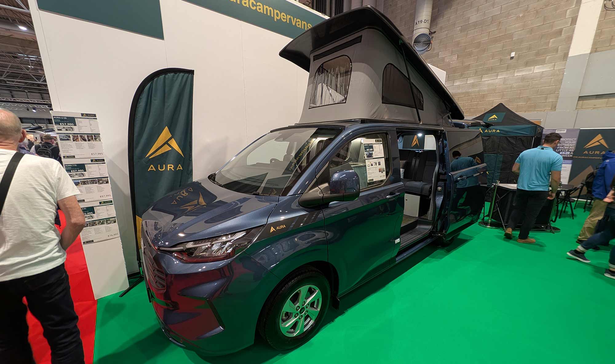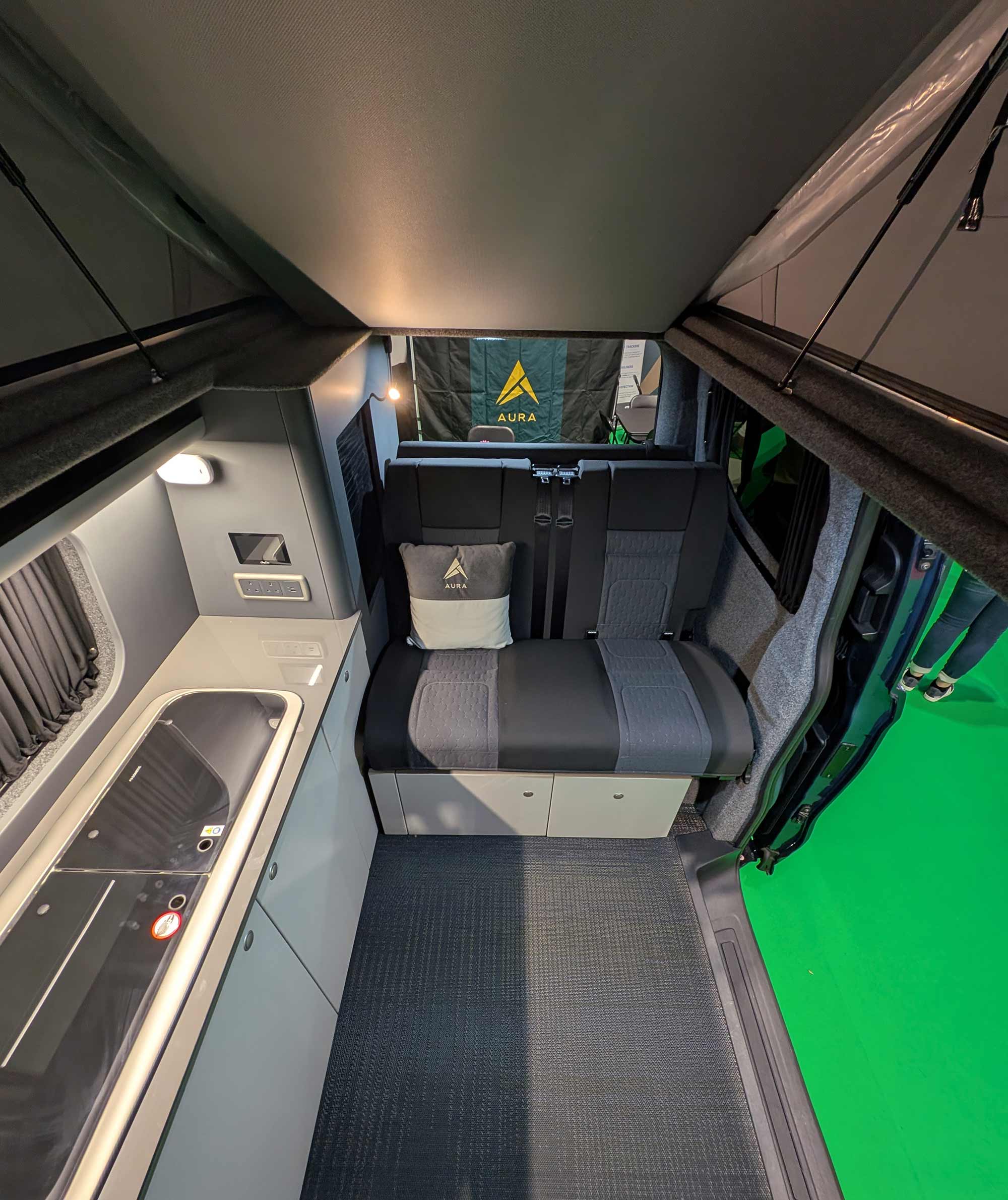 Aura is the brainchild of Mike Lake, formerly UK sales manager for Knaus and Weinsberg. Its new model, the Aura 4, runs either on a Ford Transit Custom, like the model on display (costing £67,994), or, for £4000 more, on a VW T7, both of which are among the best vans for converting to a camper.