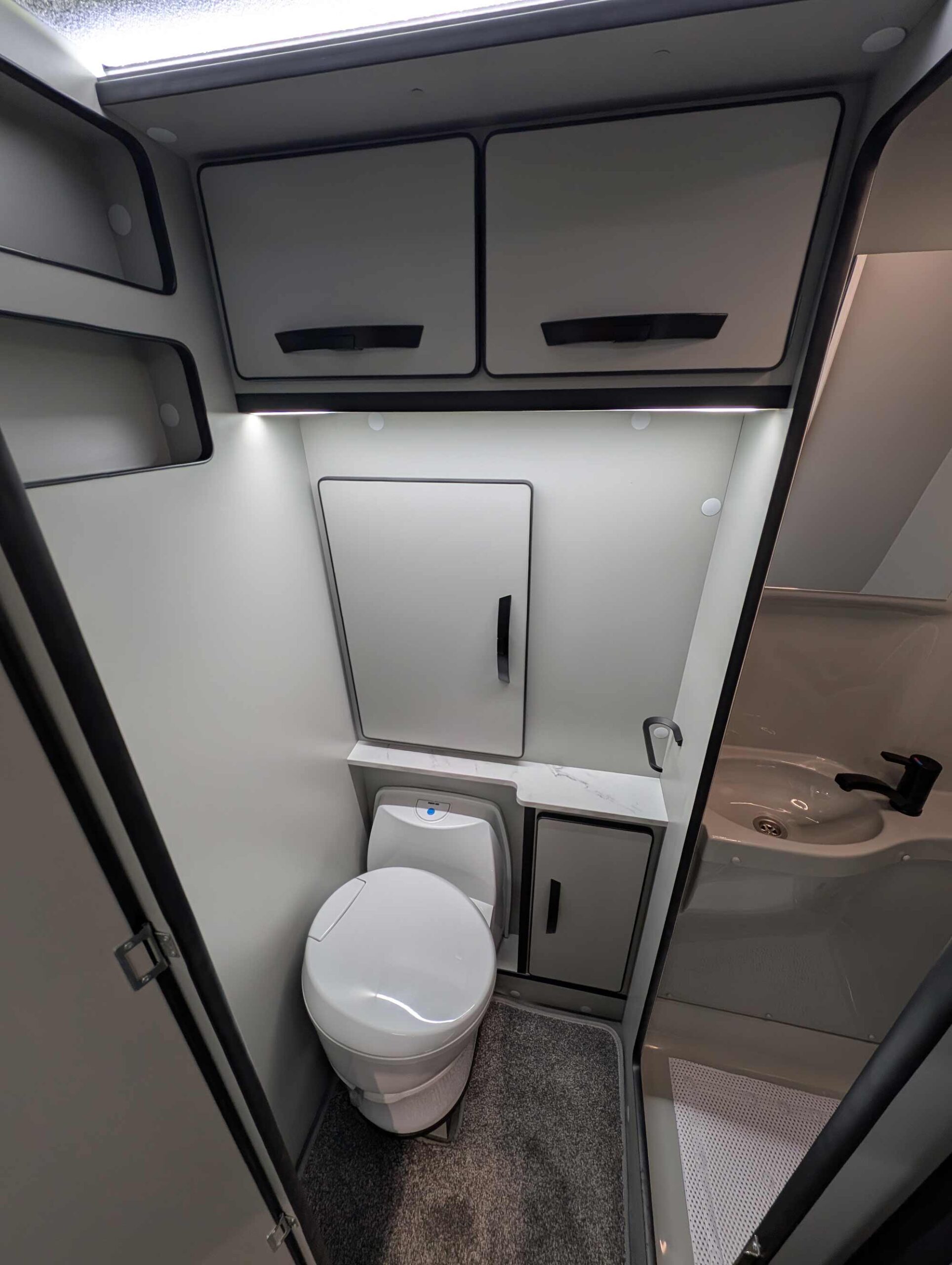 Available in metallic blue, it comes with an automatic gearbox as standard and four travel seats. The side kitchen includes a two-burner hob inline with a stainless steel sink, and you get a 35-litre fresh water tank. The roof rises at the front.
