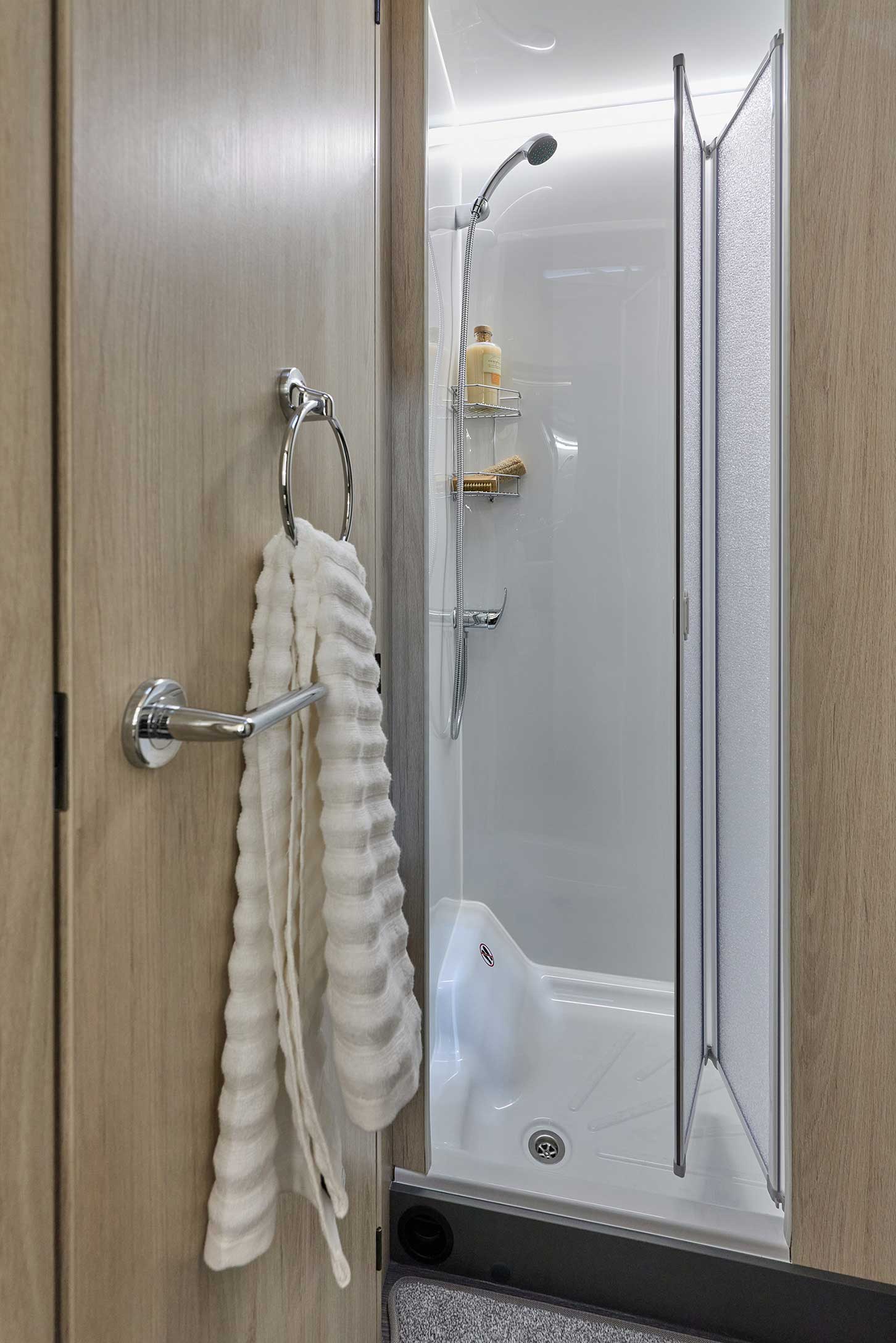 The new F-Line F67 has a layout similar to the existing Auto-Trail Excel 675B, but thanks to having a wider body, it manages to include a larger end washroom as well as an optional drop-down bed over the front lounge.