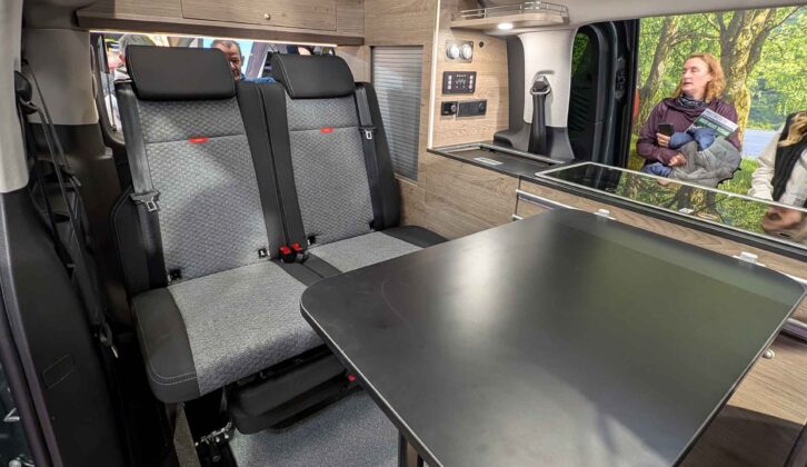 It’s a small campervan, only coming to 4.98m-long, and as standard, it runs on a 2.0-litre, 180bhp engine with automatic transmission. Standard driving assistance features include adaptive cruise control, hill start assist, rear parking assist and a reversing camera.