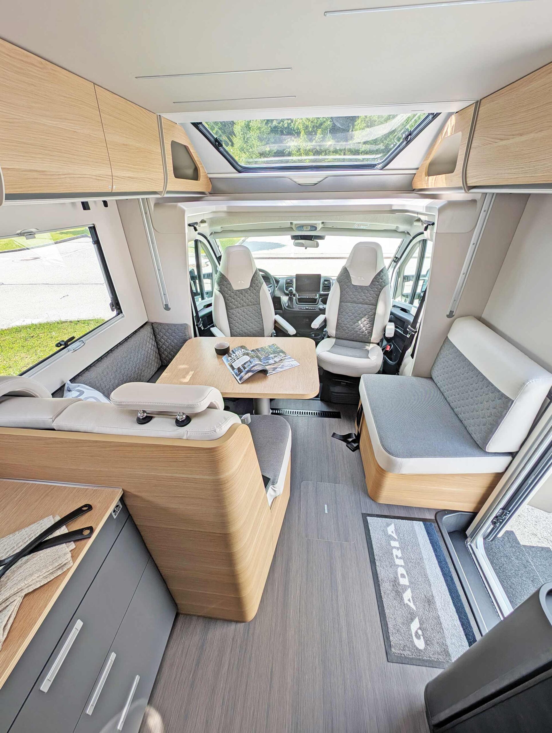 The cab and lounge in the Adria Matrix 670 SL 60 Year Edition