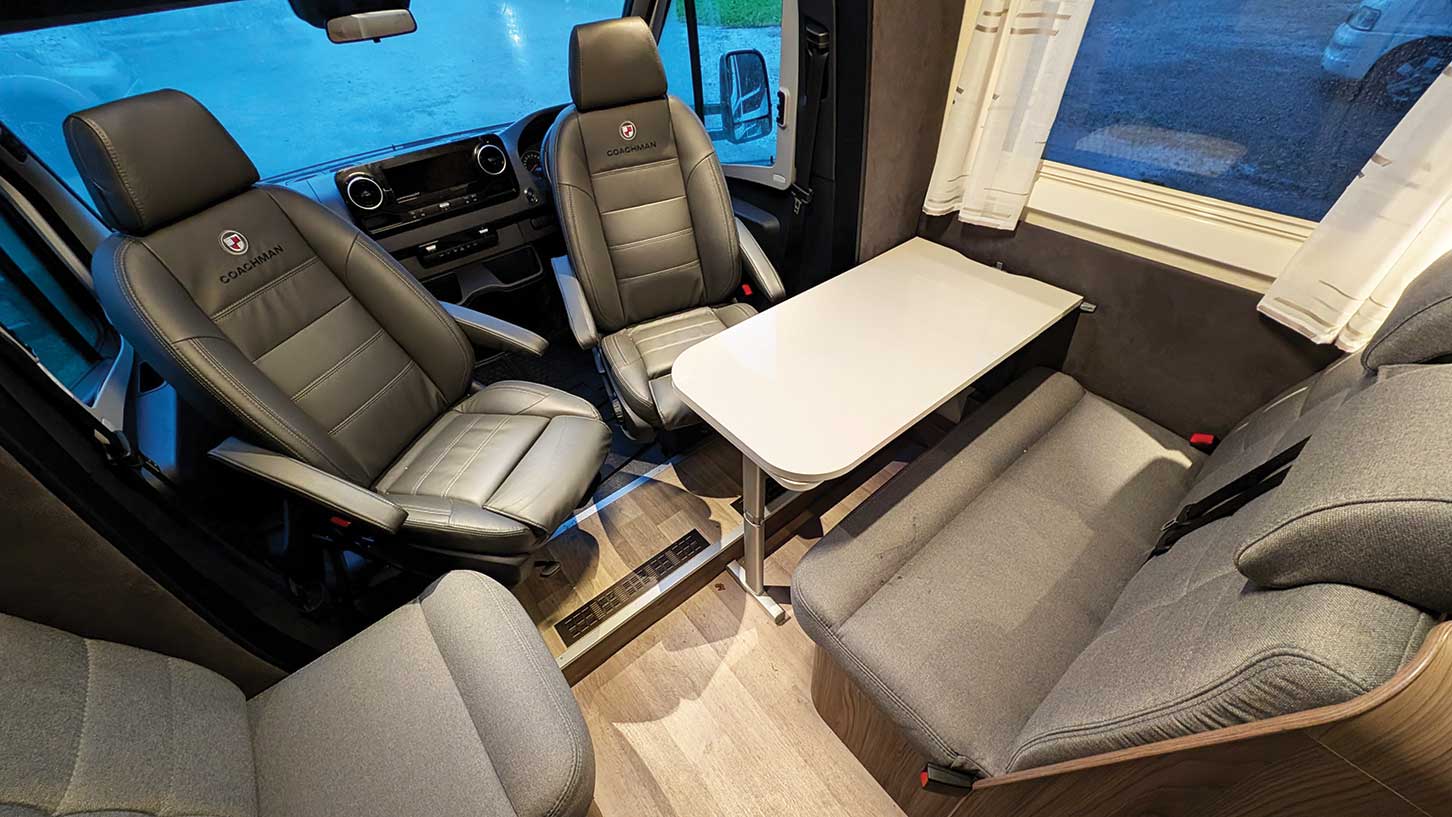 In the model we tested there was a clip-on table with a serious extension that you could also fold back if you wanted more legroom, always a welcome touch in the best luxury motorhomes. You can still get the layout we had on special order, although you need to bear in mind it is slightly heavier than the parallel-seat layout – with all that extra seat structure – and so it could eat into your 450kg payload.