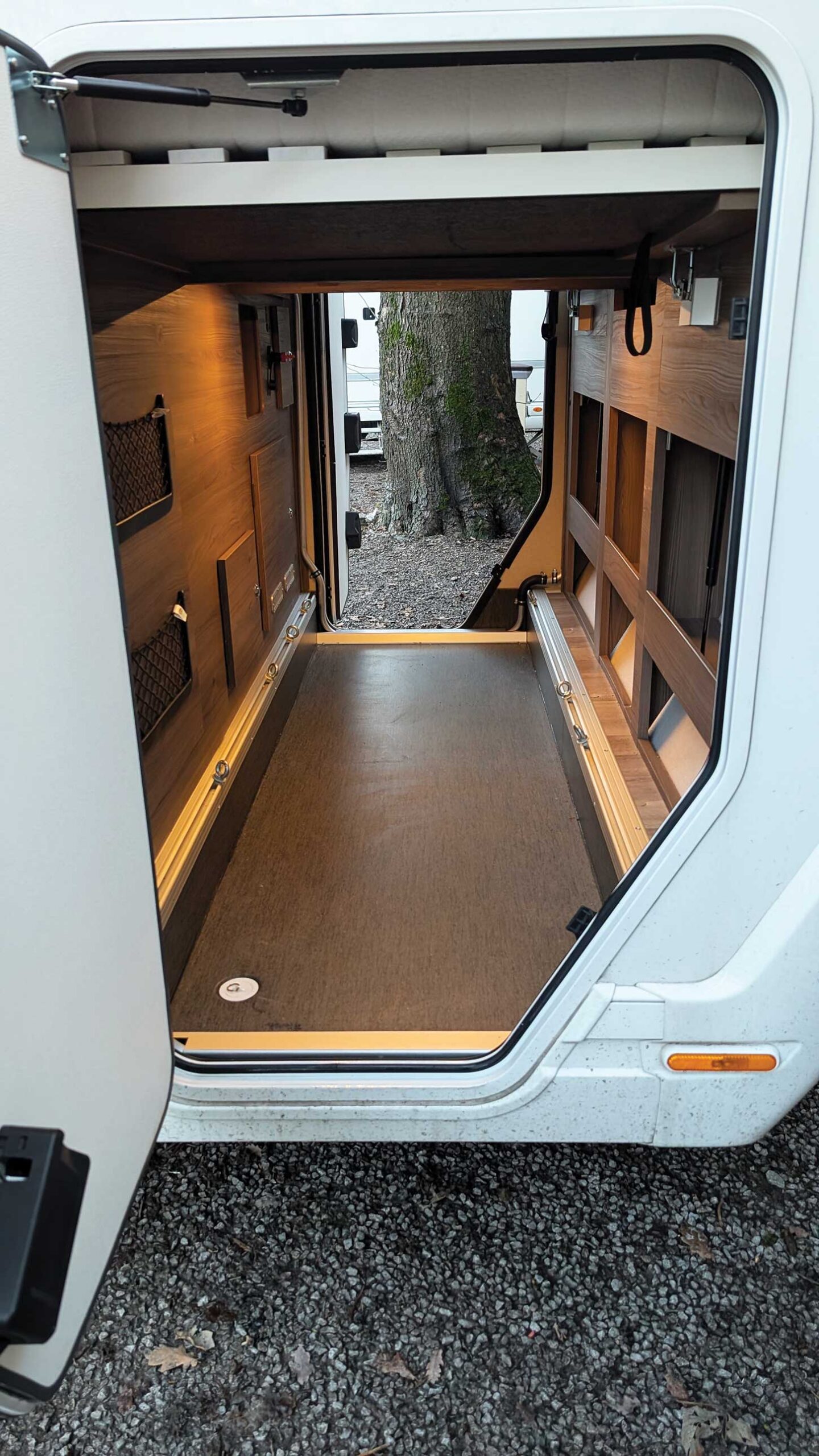 This may be Coachman’s ‘small’ motorhome, but the large garage at the back is big enough for most bicycles. If you have one with a particularly large frame, the roof of the garage can be raised marginally (without affecting the inside) by releasing a simple catch. The garage is heated and lit, although you have to remember to turn the light off when you close the doors because this is the one light that does not appear to be controlled centrally, and it does shine up through the beds above.