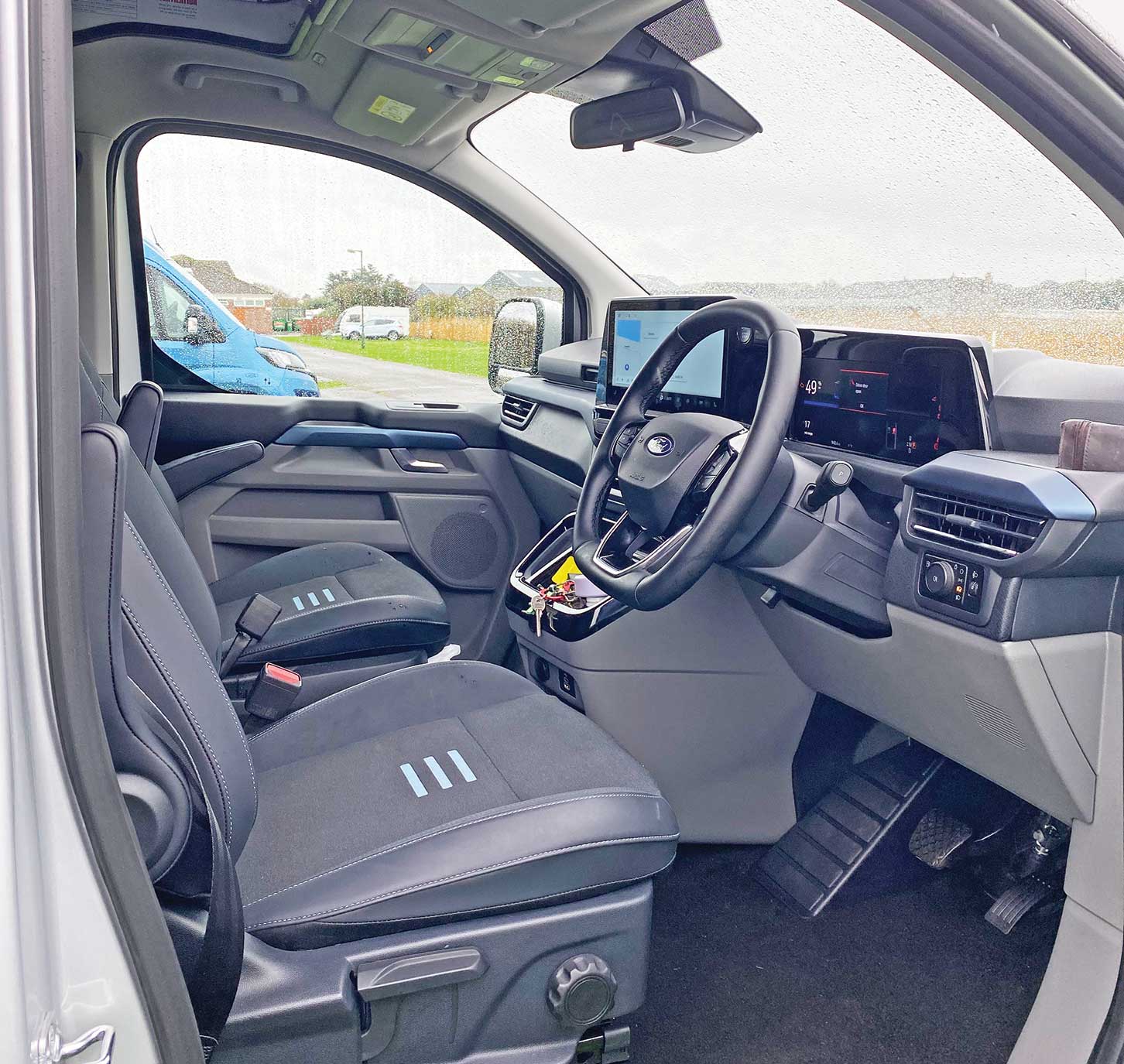If you’re entering from outside, the nearside sliding door opens smoothly thanks to Ford Power Assist and has a narrow sunken footwell for wet shoes, handy if you find yourself touring in the rain.