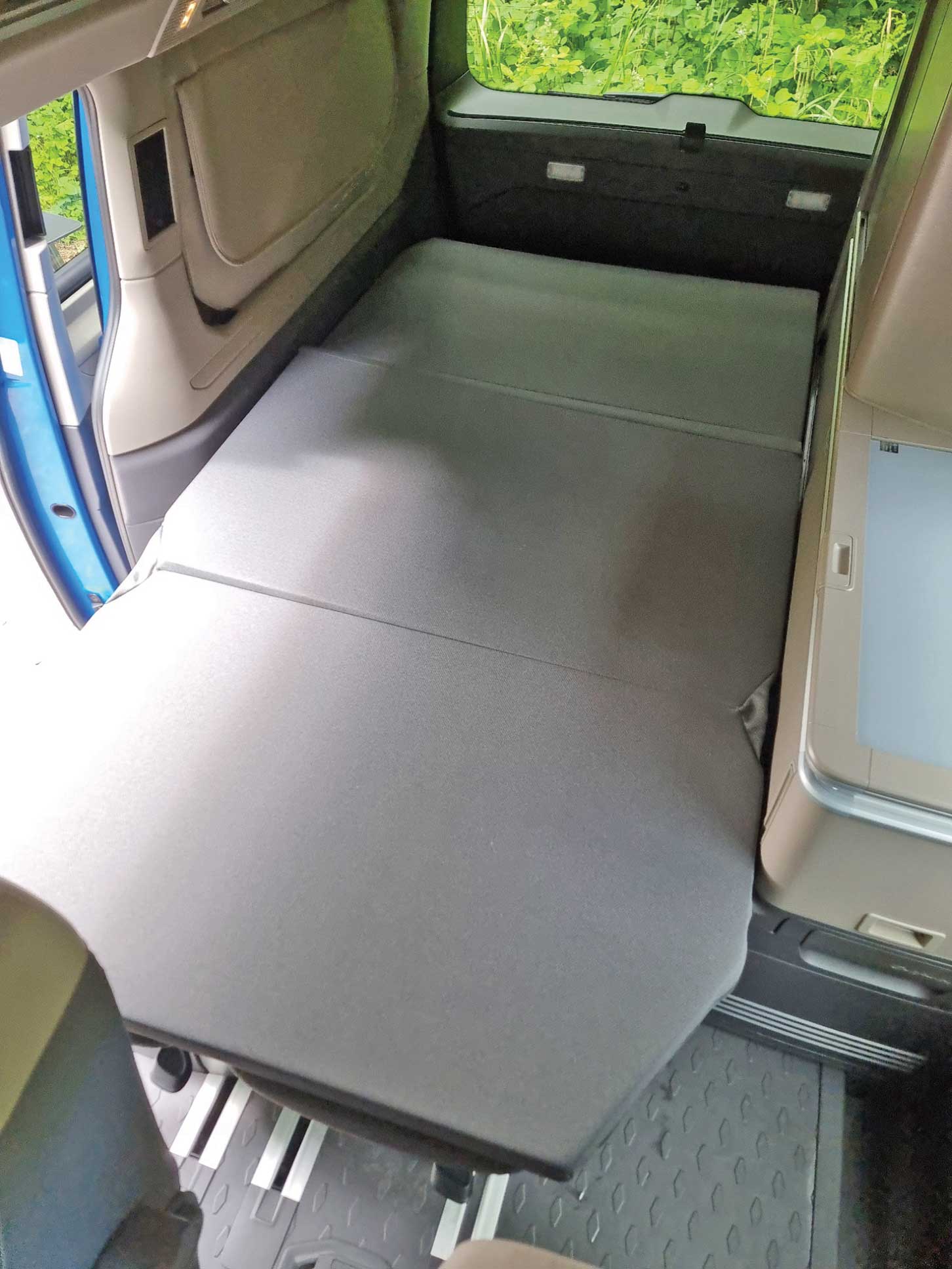 There’s room for four to sleep. The rear seats fold flat and the mattress folds out on top. The bed measures 198 x 108cm, so while not especially wide, it’s long enough for six-footers. It has a weight limit of 200kg. You can consider enhancing your sleeping experience with the best mattress topper for a VW campervan, too.